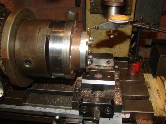 Then mount the jig on the dividing head and use a dial test indicator to make sure its perfectly true. The jig is made so that it can be adjusted for any small error so that there is no problem moving it from the lathe to mill.